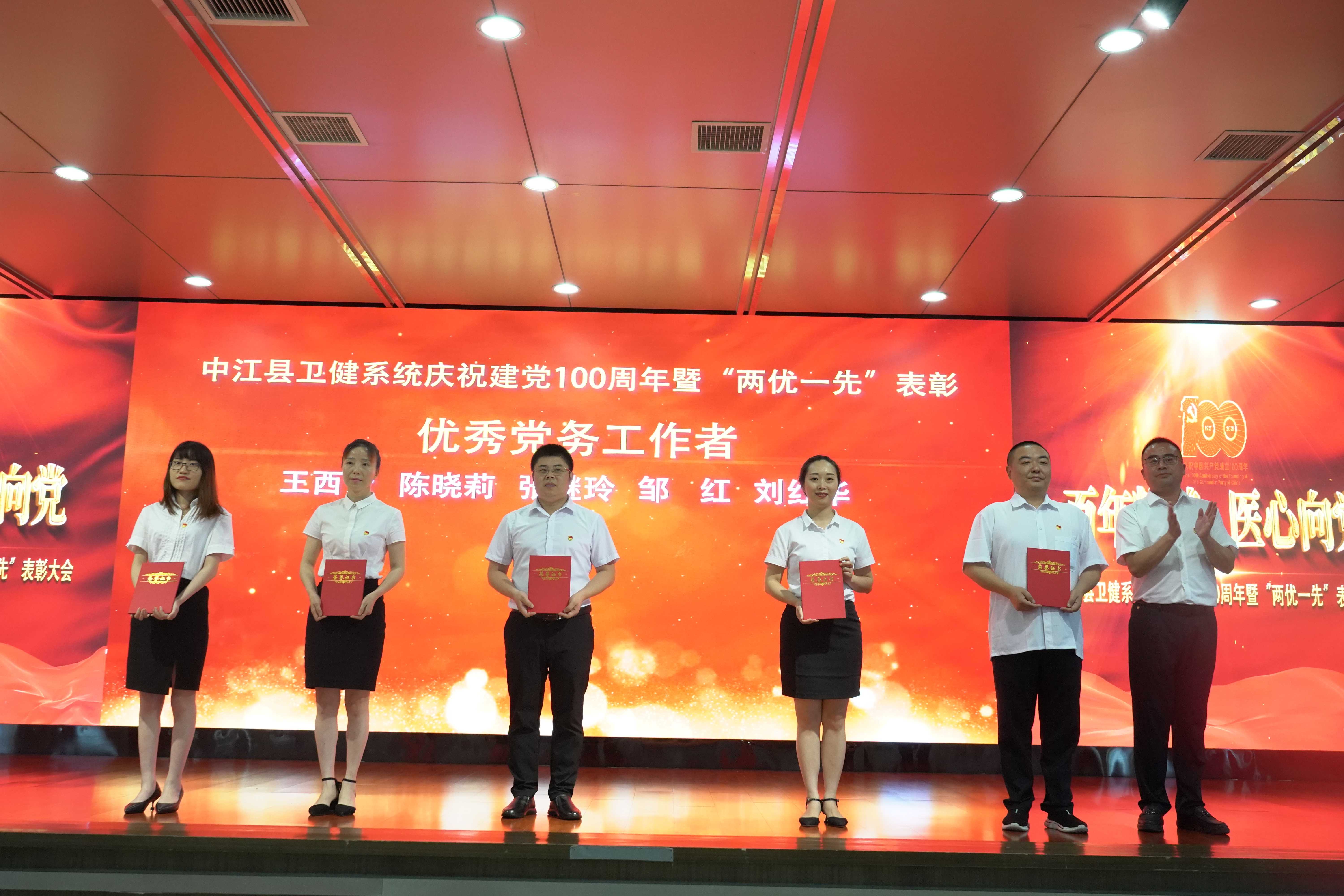 2021年6月23日,县卫健局百年辉煌,医心向党“庆祝建党100周年暨”两优一先“表彰大会在我院仁爱厅举行。我院陈晓莉荣获”优秀党务工作者“