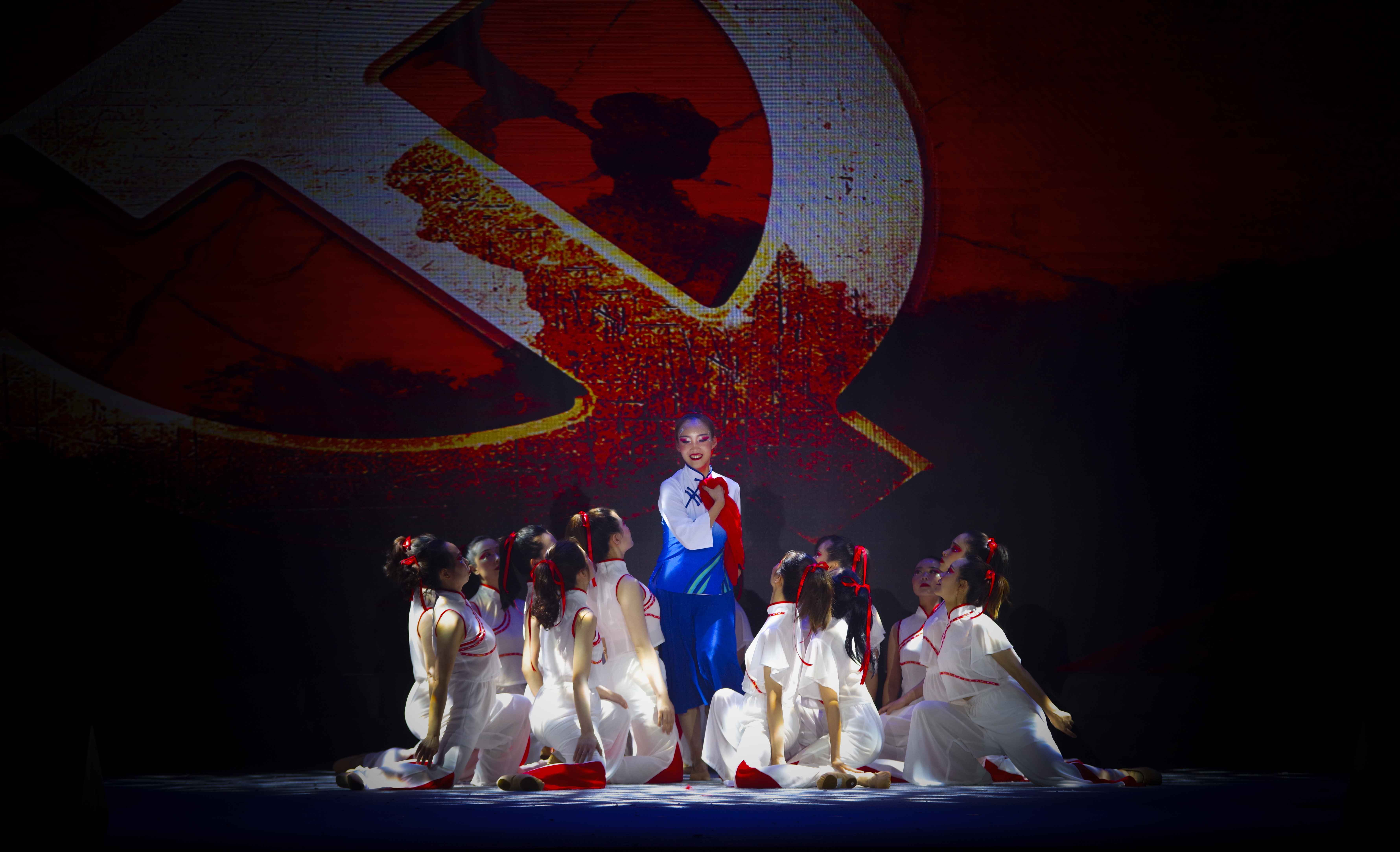 2021年6月17日晚,我院在中江县市民中心举办了”百年初心,医心向党——庆祝中国共产党成立100周年文艺汇演及先进表扬“晚会。图为舞蹈《追寻》