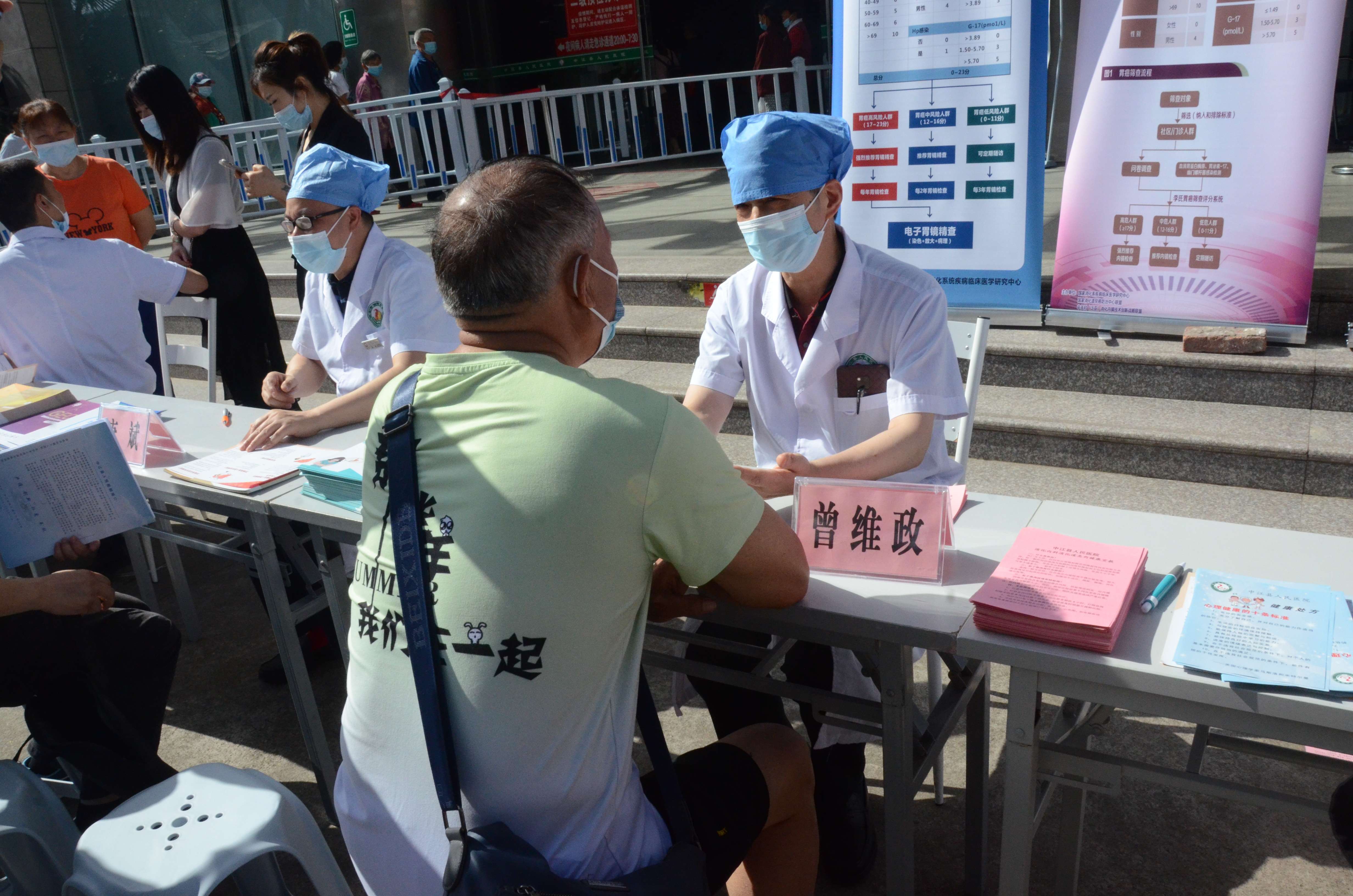 2021年6月4日,我院消化内科及内科第一党支部联合开展了“幽门螺杆菌感染与胃早癌早诊早治义诊活动”(图为曾维政教授在义诊现场)