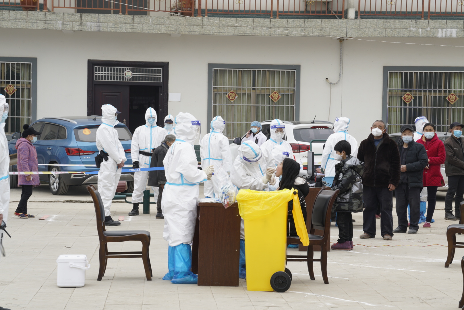 2021年2月2日,我院参加全县核酸采样应急演练。图为核酸采样模拟现场
