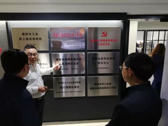 活动首先由中共四川君唐律师事务所支部委员会支部书记唐朗军同志带领参观介绍君唐律师事务所支部委员会支部建设情况及支部党建活动情况。