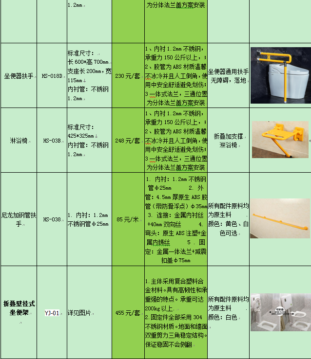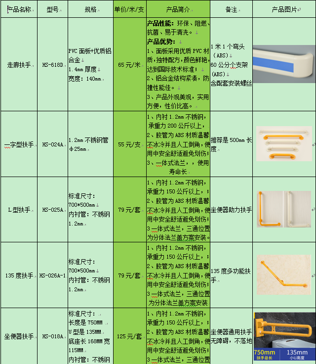 中江县人民医院病区扶手、拉手等无障碍设施技术参数